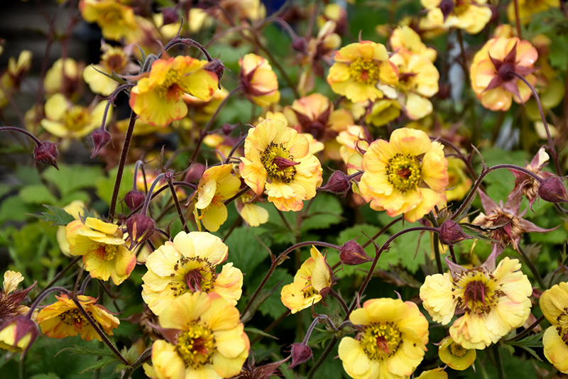 Tequila Sunrise Avens has semi-double lemon yellow frilly flowers with crimson eyes and crimson spots at the ends of the stems from late spring to mid summer, which are interesting on close inspection. The flowers are excellent for cutting. Its tomentose lobed leaves remain green in color throughout the season.