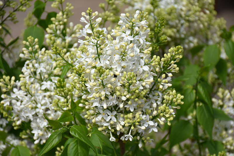 Mount Baker Lilac features showy panicles of fragrant white flowers rising above the foliage in early spring, which emerge from distinctive buttery yellow flower buds. The flowers are excellent for cutting. It has bluish-green deciduous foliage. The heart-shaped leaves turn an outstanding deep purple in the fall.