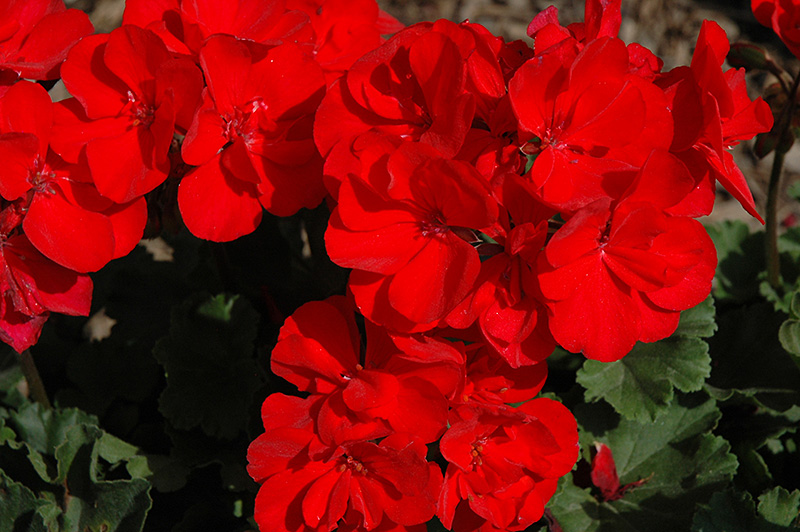 Savannah Red Geranium features bold balls of lightly-scented red flowers at the ends of the stems from late spring to early fall. The flowers are excellent for cutting. Its tomentose round palmate leaves remain green in color with prominent brown stripes throughout the year.