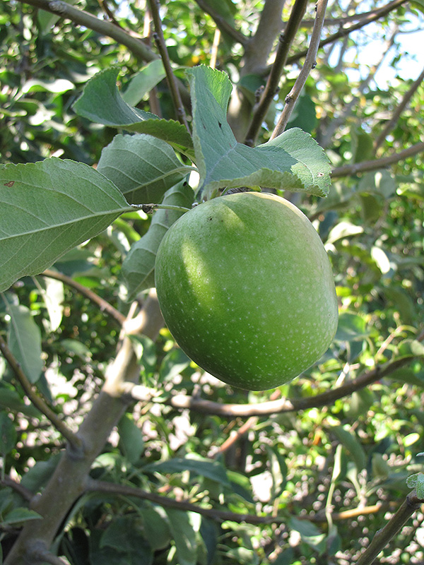 A tart apple with bright green skin, considered among the best for cooking; eating apples are high maintenance and need a second pollinator; the perfect combination of accent and fruit tree, needs well-drained soil and full sun