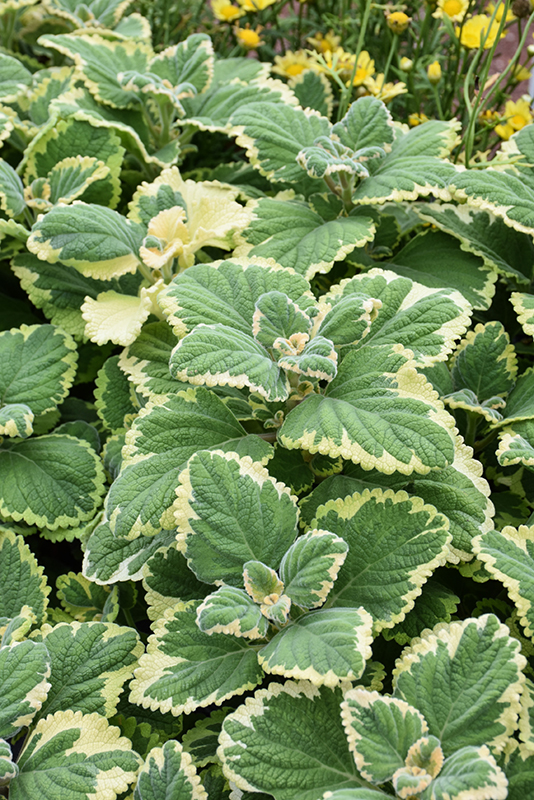 Lemon Twist Plectranthus' attractive serrated heart-shaped leaves emerge chartreuse in spring, turning green in color with distinctive yellow edges the rest of the year on a plant with a spreading habit of growth.
