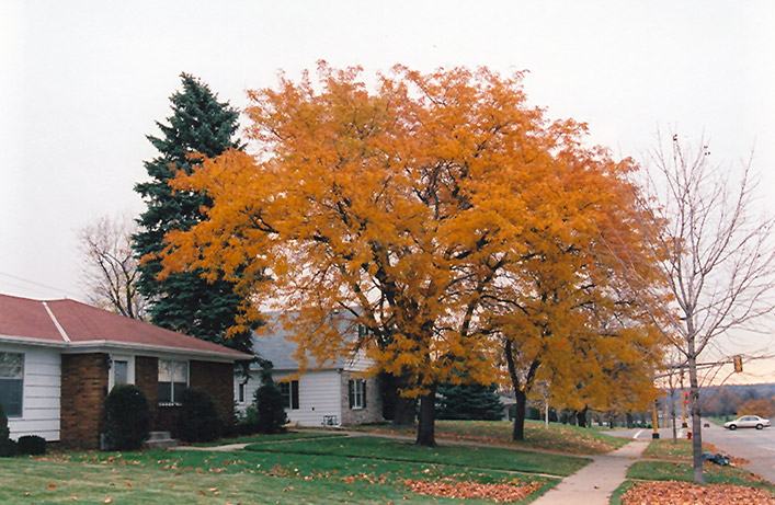 Thornless Honeylocust has rich green deciduous foliage on a tree with an upright spreading habit of growth. The pinnately compound leaves turn an outstanding yellow in the fall. However, the fruit can be messy in the landscape and may require occasional clean-up.