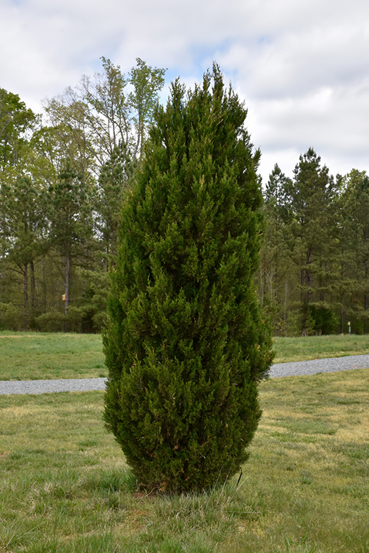 A tall evergreen shrub with a narrow pyramidal habit of growth; sharp needle-like deep green foliage and interesting blue berries, great for articulation in the home landscape, makes a wonderful tall screen or hedge planted in rows; best in full sun