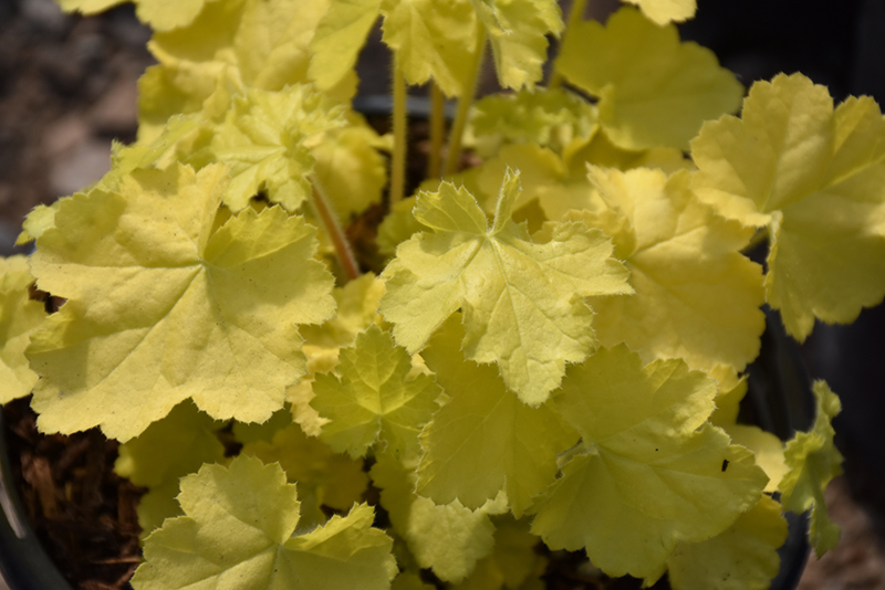 Primo® Pretty Pistachio Coral Bells will grow to be about 10 inches tall at maturity extending to 22 inches tall with the flowers, with a spread of 28 inches. When grown in masses or used as a bedding plant, individual plants should be spaced approximately 26 inches apart. Its foliage tends to remain low and dense right to the ground. It grows at a medium rate, and under ideal conditions can be expected to live for approximately 10 years. As an evegreen perennial, this plant will typically keep its form and foliage year-round.