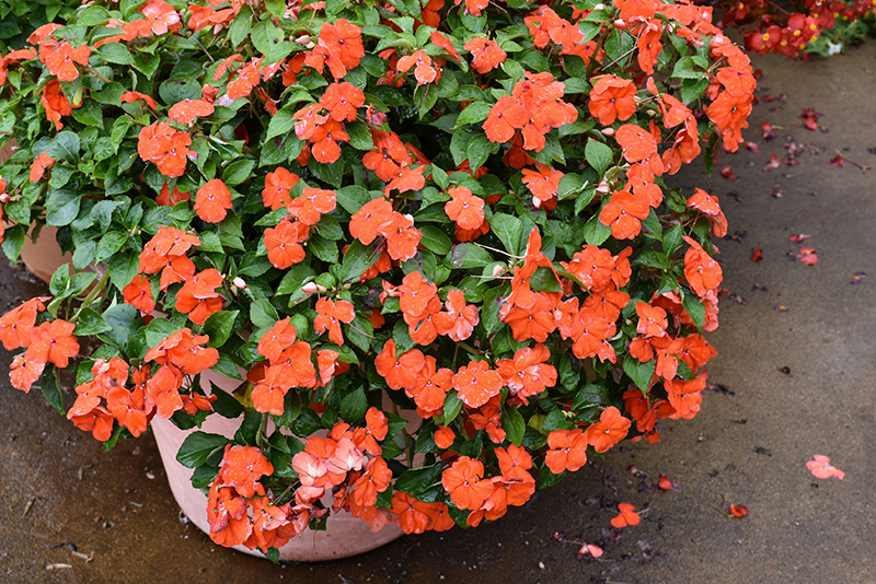 Beacon® Orange Impatiens is a fine choice for the garden, but it is also a good selection for planting in outdoor containers and hanging baskets. It is often used as a 'filler' in the 'spiller-thriller-filler' container combination, providing a mass of flowers against which the thriller plants stand out. Note that when growing plants in outdoor containers and baskets, they may require more frequent waterings than they would in the yard or garden.