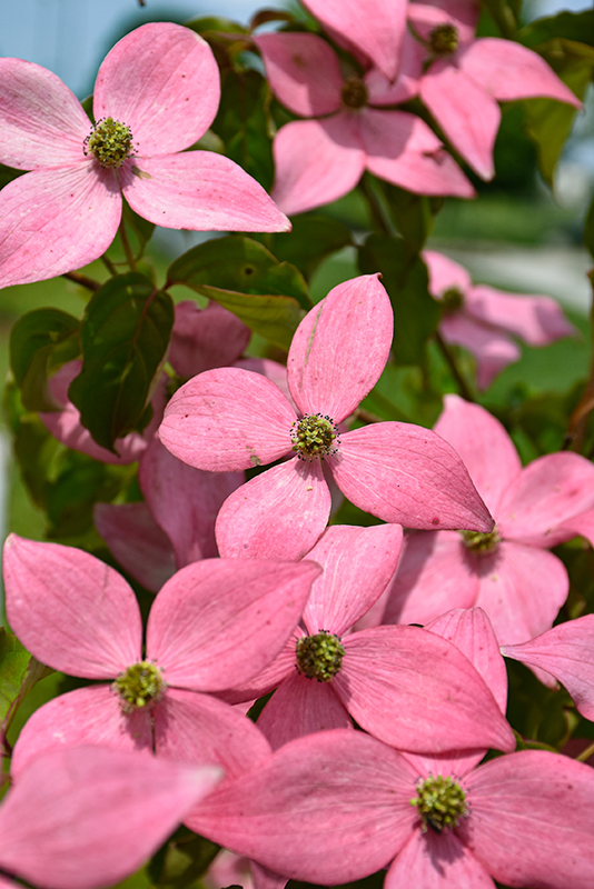Scarlet Fire® Flowering Dogwood is smothered in stunning clusters of fuchsia flowers with rose overtones and scarlet edges held atop the branches from mid spring to early summer. It has attractive green foliage with rose veins. The glossy pointy leaves are highly ornamental and turn outstanding shades of red and purple in the fall. It produces pink berries with red hints from early to mid fall. The fruit can be messy if allowed to drop on the lawn or walkways, and may require occasional clean-up. The peeling gray bark and antique red branches are extremely showy and add significant winter interest.