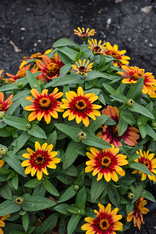 Profusion Red Yellow Bicolor Zinnia is a fine choice for the garden, but it is also a good selection for planting in outdoor containers and hanging baskets. It is often used as a 'filler' in the 'spiller-thriller-filler' container combination, providing a mass of flowers against which the larger thriller plants stand out. Note that when growing plants in outdoor containers and baskets, they may require more frequent waterings than they would in the yard or garden.