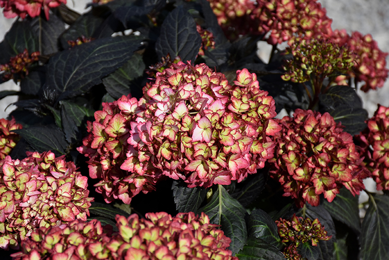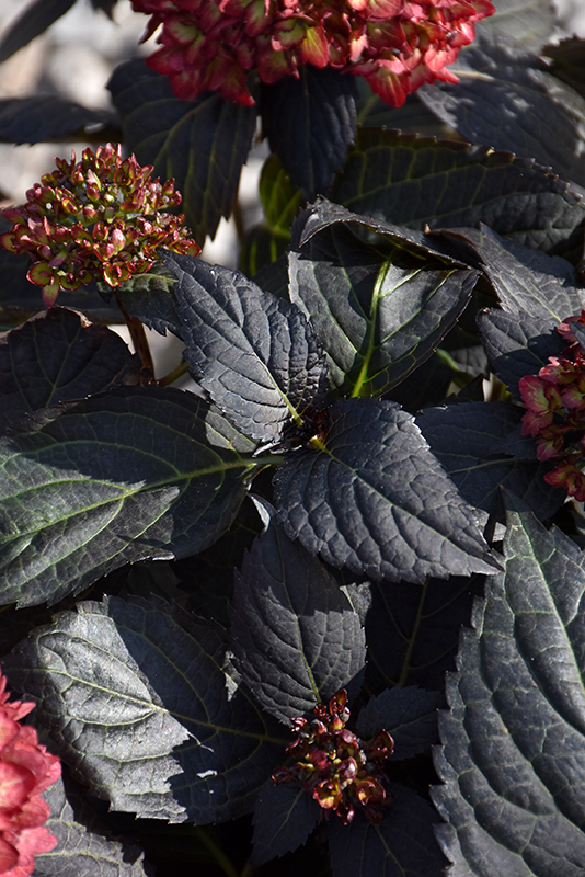 The first true dark-leaf mophead hydrangea; striking amethyst or cranberry colored blooms emerge over intense, dark purple leaves that hold their color, providing season-long beauty; it really stands out in the garden or in decorative containers
